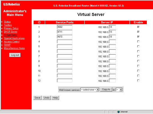 3.Enter the eMule Ports 4662 and 4672 into the Service Ports