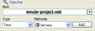 La méthode permet de définir la manière qu'eMule doit utiliser pour faire sa recherche. Les moteurs de recherche internet dédiés au réseau eMule sont aussi disponibles. Les résultats de la recherche internet apparaissent dans le navigateur.