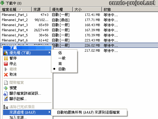 | eMule ªº¶i¶¥ A4AF ³B²z¨M©wþÓÀɮרú±o¨Ó·½ªº¦¸§Ç¦p¤U: |