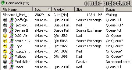 parti, eMule mostrerà una divisione delle fonti come
