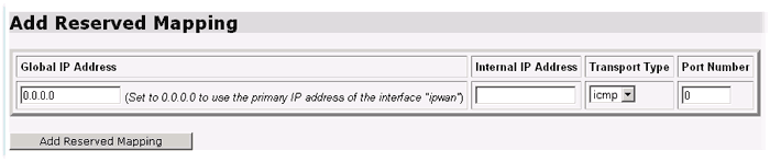 Ein Klick auf "Add Reserved Mapping" fügt die Port-Weiterleitung