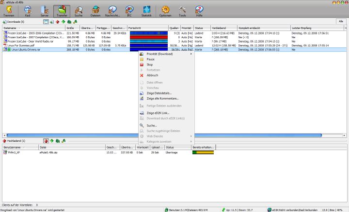 - Das eDonkey-Netzwerk eignet sich am besten, um große Dateien