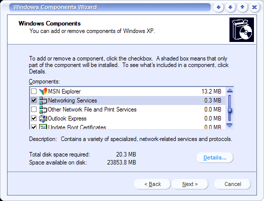 - Click OK, and then click Next in the Windows Components Wizard. You