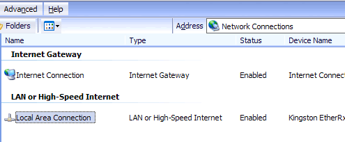 - Click Start>Settings>Network Connections. Right click on 'Local