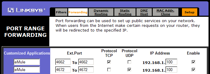 the router needs to forward to make eMule work. Fill in the blanks as below,