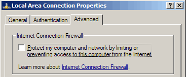 top click on 'Advanced'. Make sure that the XP firewall is turned off
