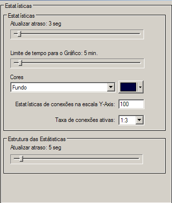 Na guia Estatísticas diretamente abaixo da árvore de dados estatísticos de detalhes há um gráfico indicando as conexões atualmente ativas e o número de uploads e downloads. Este gráfico é usualmente escalonado de 0 a 100 mas esta configuração permite mudar isto, assim aumentando ou decrescendo a resolução do gráfico.
