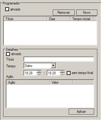 O programador permite criar perfis de ação com uma ou mais ações a desempenhar em um intervalo de tempo ou dia da semana.